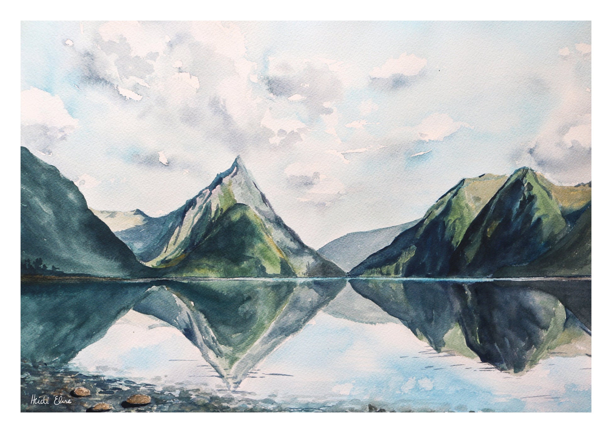 Peaceful reflections across Milford Sound.